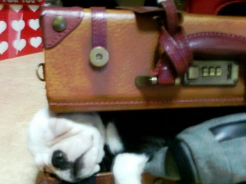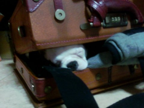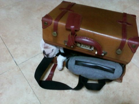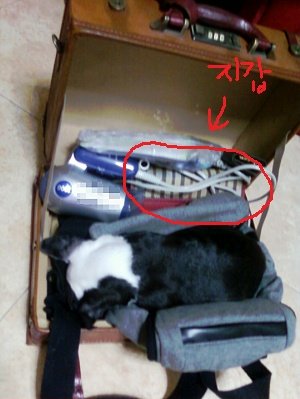 구석에 있는 가방을 빼내기 위해 천천히, 아주 천천히~~ 당겼음