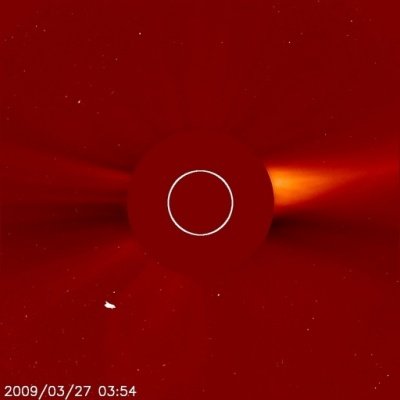 아랫 사진은 미 나사 소호위성이 촬영한 태양 옆의 거대 UFO 모선의 실제 모습이다.