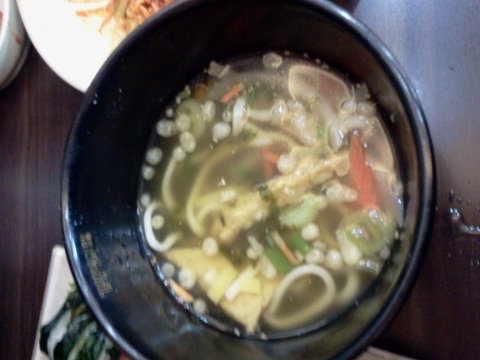 들어갔는데 사람은 좀 보통정도 있고 아줌마가 김치랑 국물 단무지등 세팅해 주는데