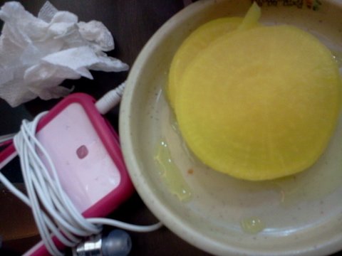 단무지 옆의 주황색 재탕의 흔적을 볼수있음
