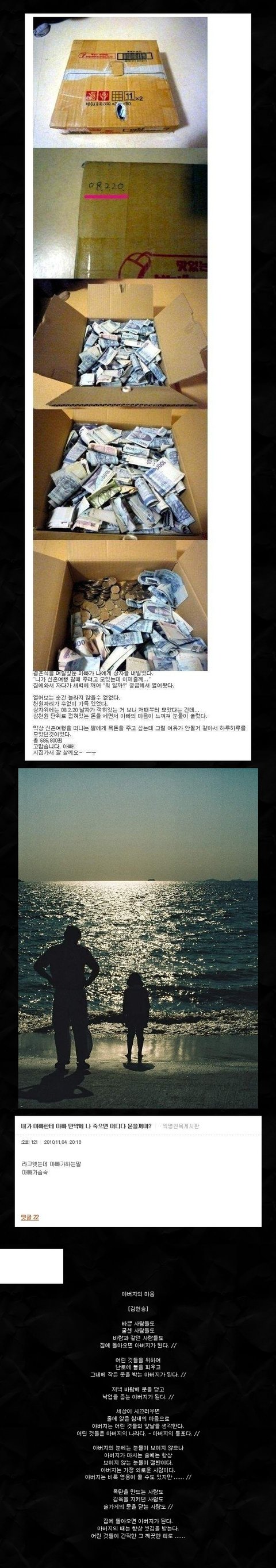 추천해주세요..이 글을 읽고 아버지께 사랑한다고 말하는 사람이 늘 수 있으면 좋겠습니다.
