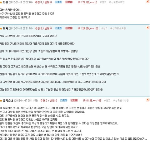 몇몇분들이 그만해라 끝난일이다 싸움붙이지 마라 지난일 왜 들쑤시냐 말하실수 있음