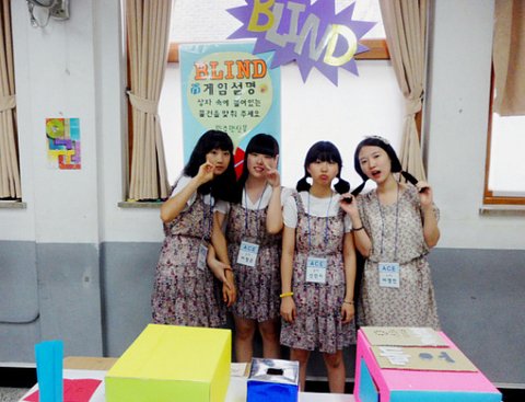 상자안에 있는 물건을 맞추는 게임으로서 이것도 시각 장애인 체험을