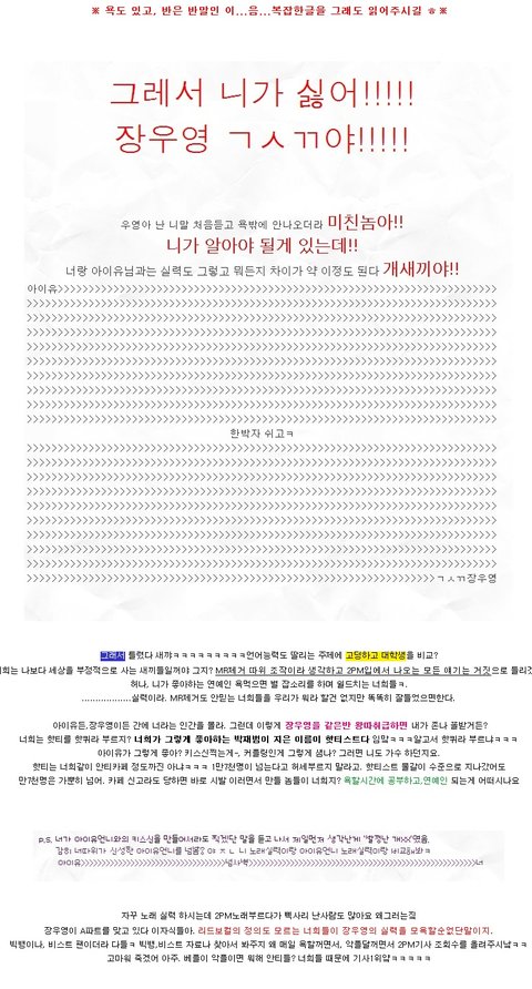 다짜고짜 장우영 발정난새끼,아이유한테 찍접대는 새끼가 뭐니ㅋㅋ