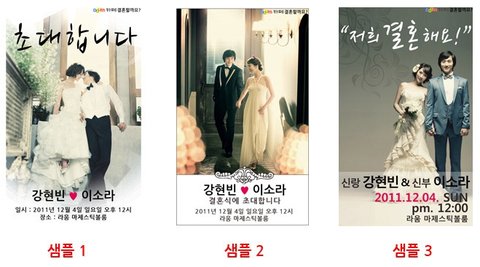 스마트폰용 청첩장 무려 3가지 디자인 무료제작 + 예단편지무료+ 10관액자 + 웨딩수첩등