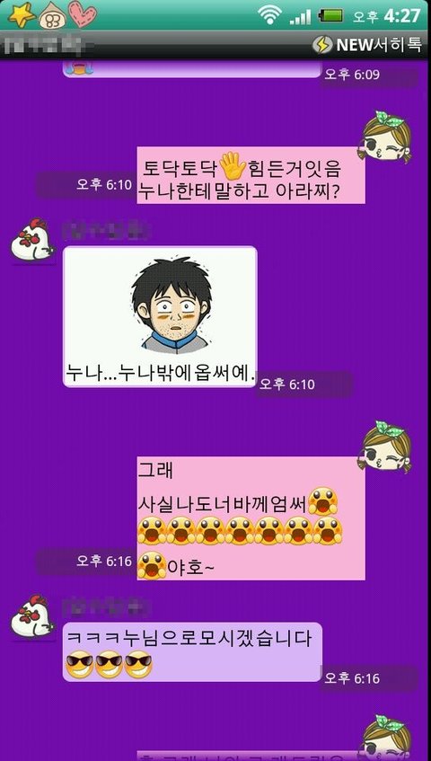 나으 엔돌핀 오빠느님께 카톡을 했다