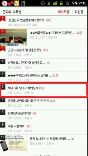 핸드폰으로 확인하니 베스트 6위이고