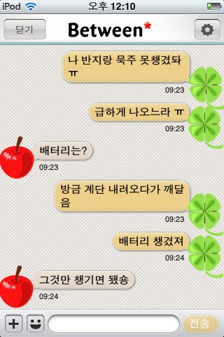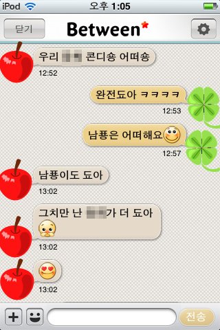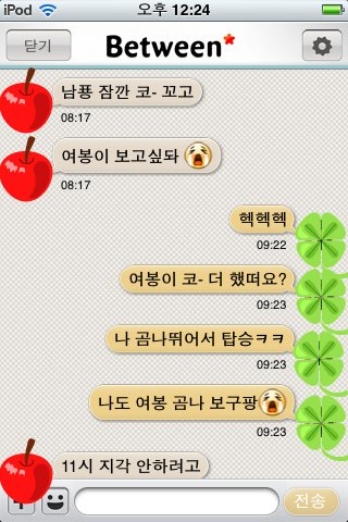 지금은 커플전용앱 비트윈으로 채팅하고 있어요 ㅋㅋ 아 너무 염장질인가ㅠ
