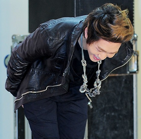 알던 사람인냥 웃으며 폴더인사를하는 온유