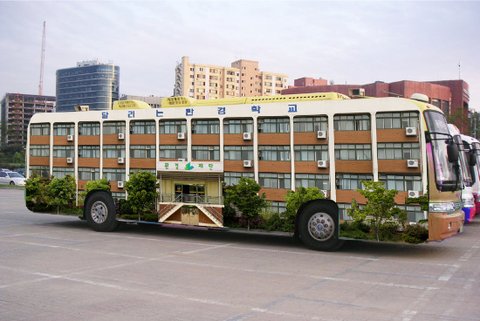 초등학생을 대상으로 대형 버스 안에서 환경 교육을 실시하는 이동식 교육장