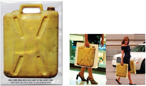 물부족 현상을 호소하기 위해 만들어진 쇼핑백 디자인 / 빈곤층과 부유층을 상대적으로 비교한 작품.