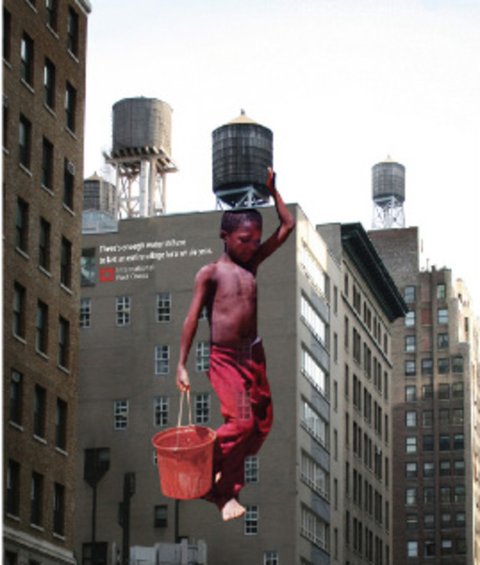 물 부족의 아프리카 어린이를 돕자고 호소한 홍보물