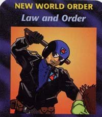 이 카드는 어느날부터 한국 보수진영에서 그토록 떠들어대는 '법질서' 카드입니다. 법과 질서...... 듣기야 좋은 말이죠. 하지만 카드 속 그림을 보세요 어떤 일이 진행되고 있는지. 한국 현실 상황과 전혀 무관치 않을 뿐 아니라 소위 선진국들 내에서도 이런 법질서 확립 차원이라는 미명하에 통제가 심해지고 있습니다.