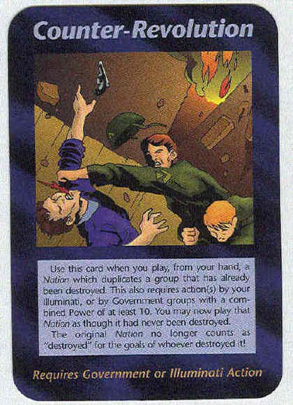 제목은 일루미나티: 음모이론 게임(Illuminatii : the game of conspiracy)였으며 당시 카드/보드게임 시장에서 선풍적인 인기를 끕니다. 게임 목적은 자신이 세계를 움직이는 비밀 조직인 일루미나티를 이끌고 세계를 지배해서 특정한 목적을 이루는 것입니다.(이들이 특정한 목적을 이루기 위해서는 인간들이 두려워 하는 사건을 끊임없이 만들고, 사건을 해결할수 있는것도 자신들이라는 인식을 심어준다-매스컴을 통해-이들은 인간이 깨달음을 이루고 스스로의 결정권을 갖도록 허락하지 않는다, 끊임없는 사건을 만들어 자신들의 통제하에 두려한다, 소수가 다수의 인류를 통제하는 방법은 권력의 힘에 의지하도록 쇠뇌하고 습관을 들인다.이러한 일들이 현재도 진행되고 있다, 게임처럼,,,)
