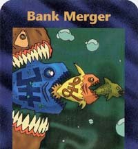 은행 합병 카드입니다. 97년 IMF가 오고 국제 투기자금들이 아주 극성을 부리기 시작했죠. 다음 카드와 함께....