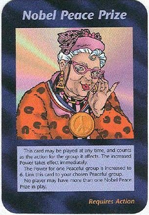 평화를 위해 죽어라, 뭐 이런 뜻의 카드가 되겠습니다. 무장조직, 폭력조직을 콘트롤하는 방법이고 평화단체, 평화를 내세워 목적을 달성하는 일루미나티의 전형적인 수법 되겠습니다. 통일교의 문선명도, UN도, 세계에는 세계 평화를 외치는 그룹이 너무나 많죠. 이상할 정도로. 애시당초 그런 모든 파워그룹들이 정말로 합심했다면 세계 평화는 오고도 남았을 겁니다(표면상이라도). 그런데 아니죠. 실제로 평화를 부르짖는 단체들의 뒷돈을 대거나, 그 단체들이 뒷돈을 대는 조직들의 면면을 보면 경악할 겁니다,,,