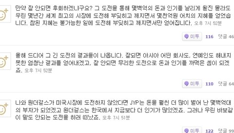 원더걸스 컴백 발표후에 4일 연속 jyp주식 상승