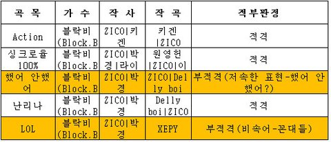 그리고 곧 2월 초에 컴백하는 블락비의 앨범이 1월 25일부터 예약 판매가 시작 되며 앨범 리스트가 올라와 각 방송사에 알려지자 KBS에서는 블락비 앨범 수록곡에 있는 인트로 'LOL'와 '했어안했어' 심의가 부적합함으로 부적격 판단을 내렸습니다. KBS에서 내린 이유는 'LOL'는 노래 가사에 꼰대라는 비속어가 쓰였으며 '했어안했어'의 이유는 제목 했어 안했어? 그 제목 자체가 저속한 단어라고 하며 심의 부적격 판단을 내렸습니다.