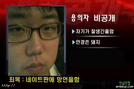 죄목 : 친구에게 망언을함 자기가 잘생긴줄암