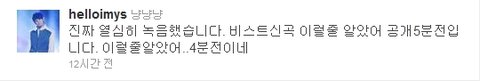 비스트가 '진짜 열심히' 녹음한 비스트의 '이럴 줄 알았어' 흥하자! 음원차트 올킬 오예¥
