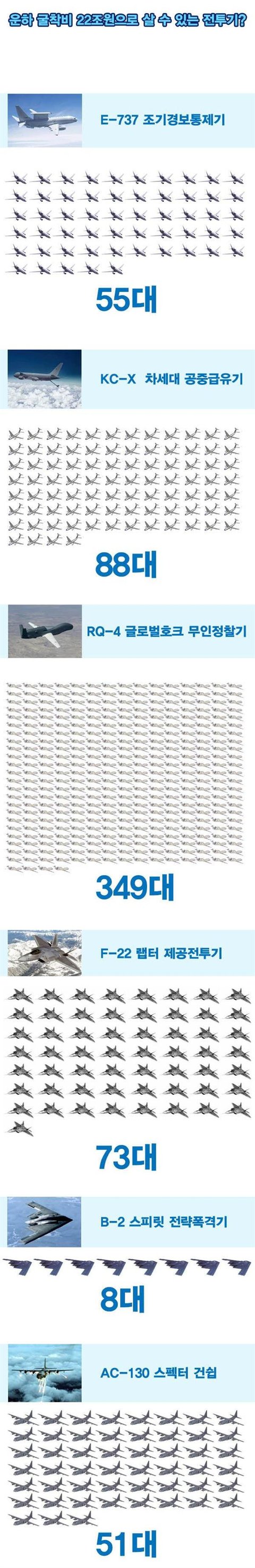 이 대통령이 4대강에 흘려보낸 22조 원을 다른 곳에 썼다면 어땠을까요? 최근 국방부는 F-4, F-5 등 퇴역하는 전투기를 대체할 스텔스 전투기를 도입하기 위해 지난 20일 FX 3차 사업 입찰공고를 냈습니다. FX 3차 사업은 스텔스 등 최첨단 기능의 5세대 전투기 60대를 2016년까지 도입하는 사업입니다.