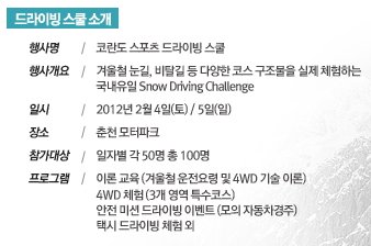 모집인원과 초청인원이 총100인데 여성드라이버만 50명 나머지 50명은 4륜구동 유저들..