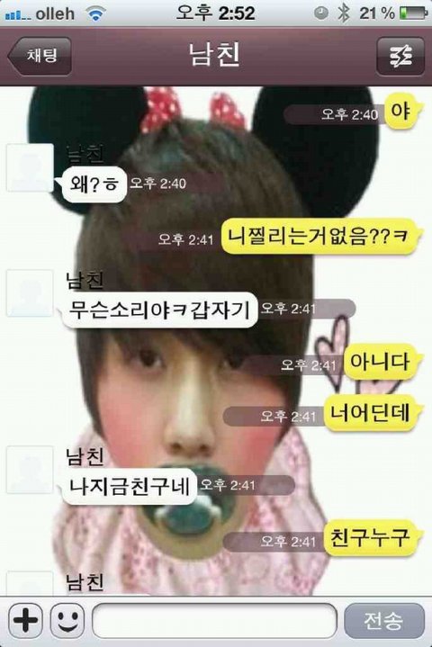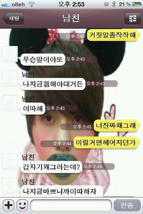 그리고 더어이 없는건 값자기 문자로 미얀하다면서
