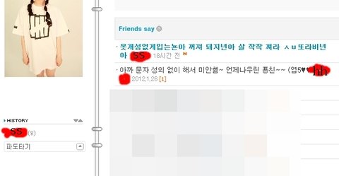 얘는맨날다이어리에이딴식으로욕하고지랄임 일촌인후배들이이런글보면 "욕하니깐무섭당 ㅠ"이런식으로댓글다는데 그러면 지가일찐인줄아나봄 ㅉ