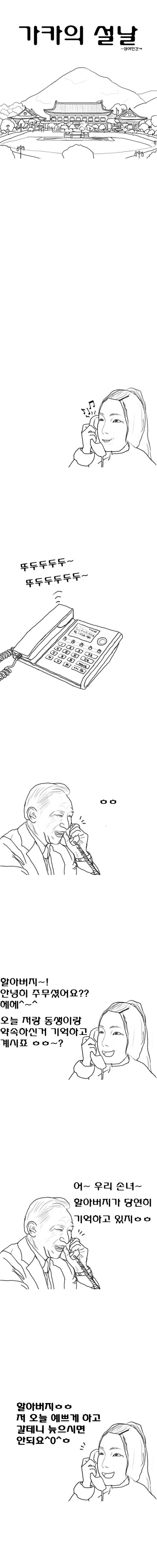 온 국민이 행복했던 설날.몽클레어패딩 사건으로 슬픈 설을 보냈을가카와 가카손녀를 생각하며 그렸습니다.