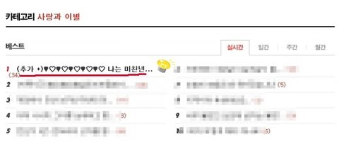 뜨어어어어엉어엇!??!?!?!?!?!!? 우와 내가 베스트1위엿다니니;;;;