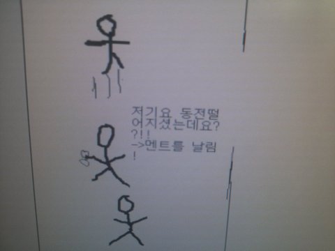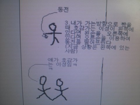 "저기, 혹시 맘에드는 사람이 친구끼리 가는데 동전을 떨어뜨리면 둘다 반응할까봐 겁나서 못하겠던데 어떡하죠?"