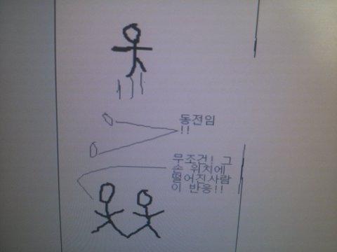 13.호감가는 이성분(아래 졸라맨)은 맘에 들면 동전 1개든 2개든 떨어뜨립니다.