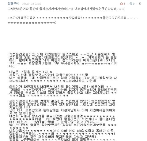 아..ㅋㅋ 이런말하긴 좀 그런데 댓글보다가 토나올뻔했음.... 650개 가량 봐가지고 ㅋㅋㅋㅋㅋ 하지만 4탄에서 댓글이 1000개가 넘어서 또 750개 가량을 봐야함.....