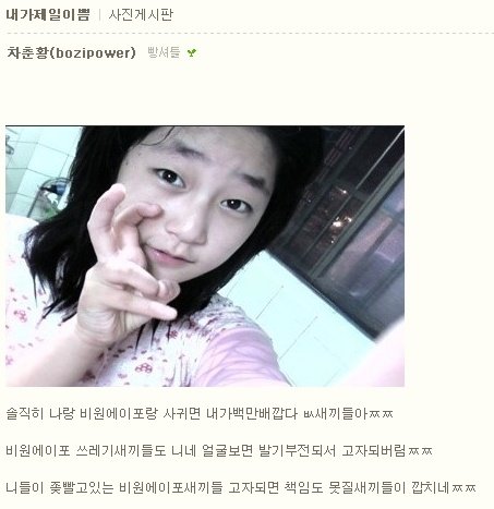 [출처] 내블로그와서 괜히시비걸지마라 창녀들아 내얼굴인증한다함까자신발성기같은게이새끼들아|작성자 차춘황