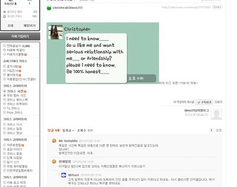 백형이라면 사족을 못쓰는 팬카페 회원년들이 크리스의 농간에 넘어갔고