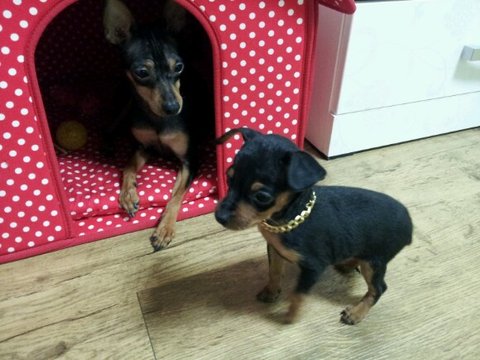 왼쪽이 8개월된 미니핀(블랙) 오른쪽이 2개월된(블순이)