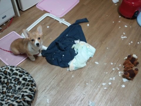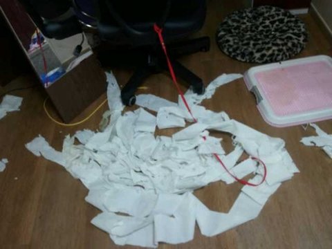 역시 텅 빈 집에 휴지와 개를 같이 놓는 것은 불구덩이 속에 들어가는 것과 다를바 없음