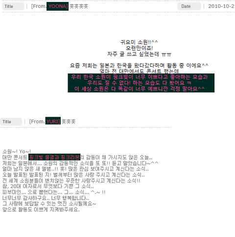 저희는 싸울생각 없습니다 그저 저희의 색을 되찾고 싶을 뿐입니다 지금 저기 보이는 색상이 저희 눈에는 핑크색으로 밖에 안보입니다 핑크색이 저희에게 어떤 의미냐면요 소녀시대와 소원의 '심장'이에요 핑크색은 소원의 심장과 같아요 2007 소녀들과 팬들은 많이 힘들었어요 루머 그리고 공식색 문제 소녀시대 팬들은 색으로 인해 SM가족들에게 외면을 당했어요 사과 혹은 다툼 소녀들은 결국 협의하에 같은 색을 쓰기로 했어요 파스텔로즈하트는 이제 심장과도 같아요 저희는 힘들고 아픈 추억에도 견뎌내고 지켰어요 이제 4년이에요 저희 색을 훔치지 마세요 -박자에 맞춰 흔드는 핑크색 야광봉이 어찌나 사랑스럽고 귀엽던지..^^ 잘자요^^! 난 오늘 꿈에서 핑크하트풍선 밭에서 뛰어놀아야지-수영 -예쁜 핑크 하트 풍성들이 보이고~ 나를 설레게하고^^-제시카 -힘차게 하트풍선 흔들어주시는 모습을 볼때면 정말 가슴이 벅차오르고 웃음짓게되요 ^______^-태연 정말 핑크색으로 제작될지는 잘 모르겠지만 아마 그렇게 될 것 같아서 불안합니다 에이핑크, 이름이 핑크니까 색깔로 핑크여야 한다는 억지논리 펼치지 마세요 엠블랙은 펄초콜릿 색상씁니다 2pm 2am분들 색상이 블랙이여서요 에이핑크도 그런 식으로 잘 해결됬음 합니다 여러분들의 힘이 필요합니다. 우리 소녀들의 핑크색만은 지킬수있게 추천 눌러주세요