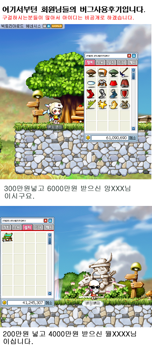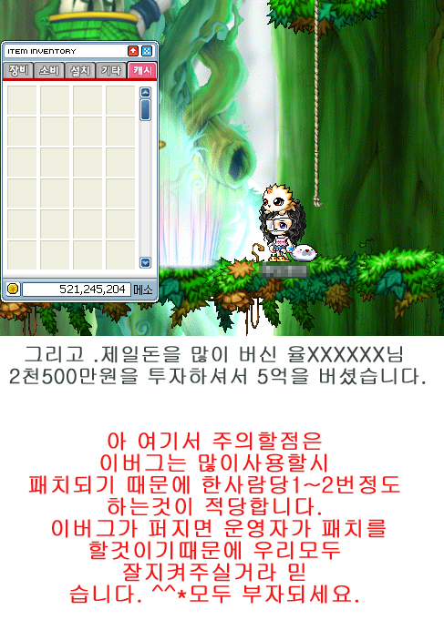 유포는 허락합니다 ... ^^ 다만 상업적이용 (이 버그를 이용해서 얻은 메소를 아이템 매니아,베이 같은곳에