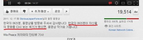 제목에서도 느껴지시겠지만 이 동영상은 한국은 일본의 문화를 약탈하고 있다는 주장을 퍼뜨리는 동영상입니다