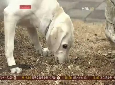 무까딜과 외출하는 도중에 화단에서 개가 땅파고 있는걸 발견한 빠빠