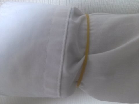 4.오른쪽 옷 소매 위에 고무줄 걸치기(더 정확한 솔