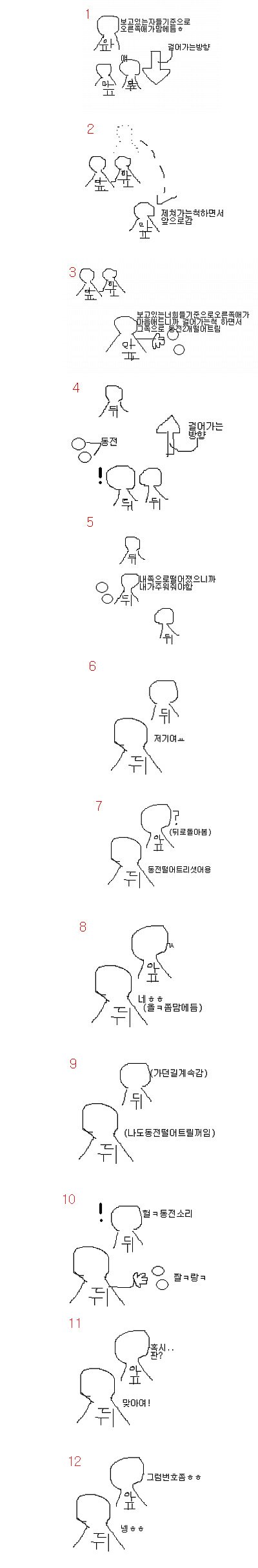 2.자기가 커플인데 어떤 사람이 동전2개를 떨궜는데 커플이란걸 알리는 제스처