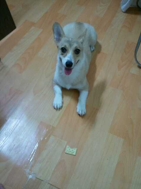 혹 다른 웰시코기를 보신 분은 아실수도 있겠지만 쨈이는 체격이 작은 편이에요 (9kg 조금 안되요 마른것같아 속상함,,,)