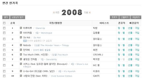 2008 연간인기곡 1위