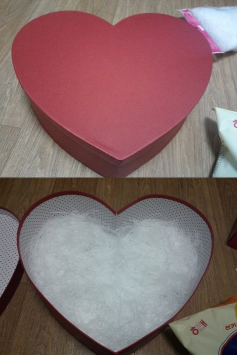먼저 하트상자를 열어서 밑에 부직포같은 무슨 뭐 그 이름이뭐지......