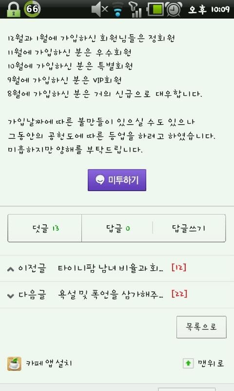 결국 8월에 가입해서 잠수타고 카페에 글하나도 안쓰던 일명 눈팅족이셨던 분들은 거기에서 정하길 '거의 신급' 이라는 등급으로 변경이 되었어요