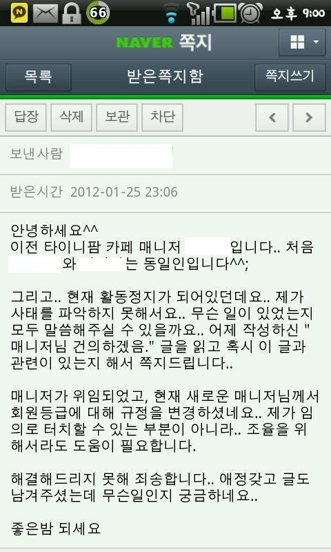 이후 활정이 풀린뒤 현 매니져분이 활정 먹인 분에게 쪽지를 쓰셨는대요 아쉽게 스샷이 없군요;;;
