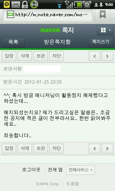 이에 이전 매니져 분이 활정은 솔직히 아니다 라고 변경된 매니져 에게 한마디 하자 활동정지 당한 본인 에게 장문의 쪽지 한통과 함께 활동 정지를 풀어 주더군요