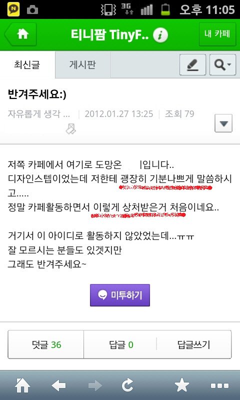 무엇보다 더 억울한건 그카페에서 활동하시는 다른 분들이 정확한 사태를 인지 못하시고 마구 잡이로 저희를 까내려 가는거죠...ㅠㅠ